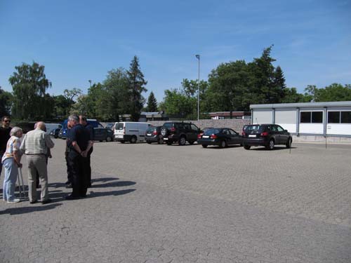 Die Anwohner wurden auf den Übungshof geleitet und wunderten sich spontan über eine Reihe geparkter Privat-PKW, die einige Meter entfernt von der Natursteinmauer und parallel zu dieser abgestellt waren. Die ca. 2 Meter hohe Natursteinmauer soll das angrenzende Wohngebiet vor Lärmemissionen des Übungsbetriebes schützen, was diese aber kaum zustande bringt. Die PKW-Reihe verhinderte an diesem „Lärmmesstag“, dass Lärmquellen wie z.B. Feuerwehrautos - wie sonst üblich - nahe an diese Mauer heranfahren konnten.